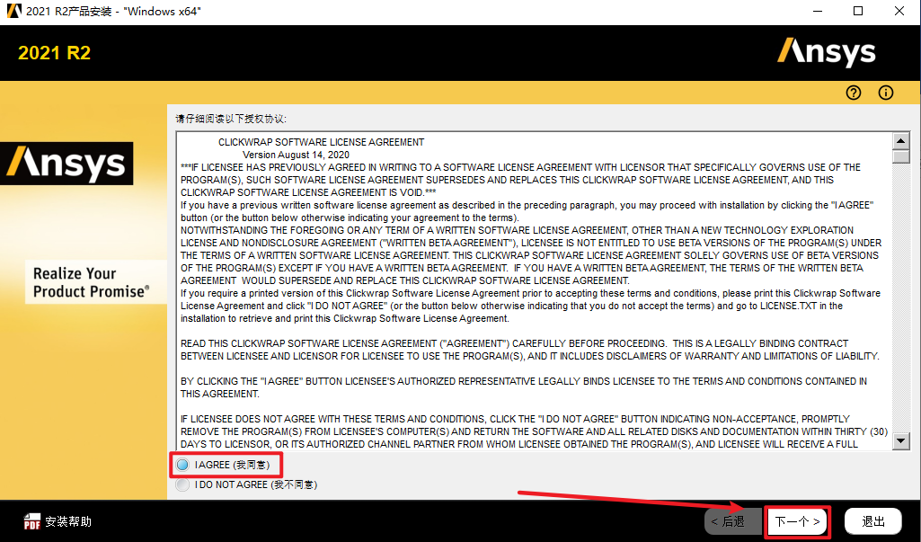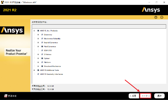 4.点击“安装ANSYS产品”,(右上角可以选择安装语言,安装完成以后也可以切换)