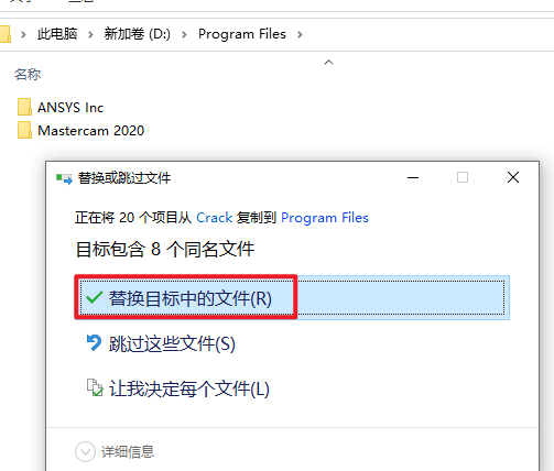 22.选择“替换目标中的文件”
