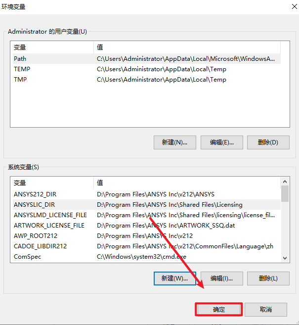 变量值:D:\Program Files\ANSYS Inc\Shared Files\Licensing(直接复制到变量值栏),点击“确定”