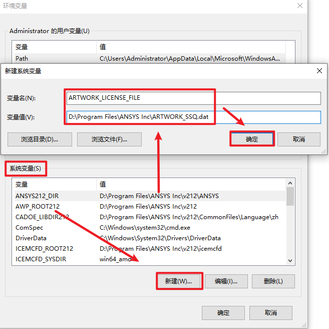 变量值:D:\Program Files\ANSYS Inc\ARTWORK_SSQ.dat(可以点击浏览文件添加),点击“确定”