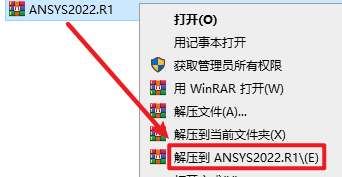 1.选中下载的压缩包,然后右键选择解压到”ANSYS2022.R1
