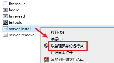 10.打开复制到C盘的“SERVER_LICENSE_FILE“文件夹,选中“server_install”右键选择“以管理员身份运行”