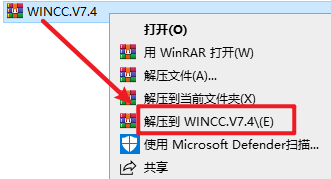 1.选中下载的压缩包,然后右键选择解压到”WINCC.V7.4″