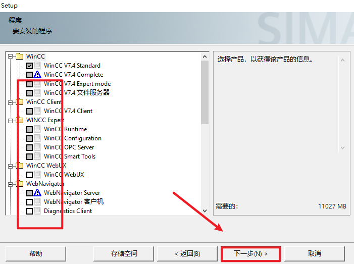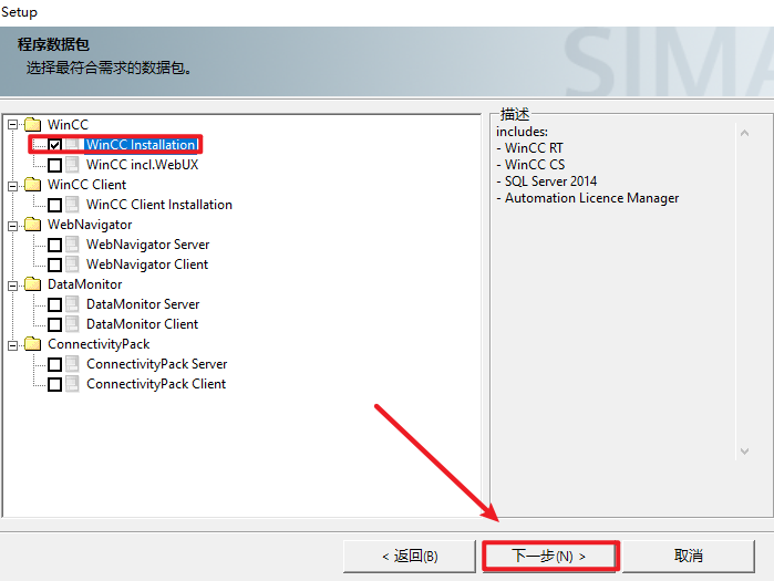 11.勾选“WinCC Installation”,点击“下一步”