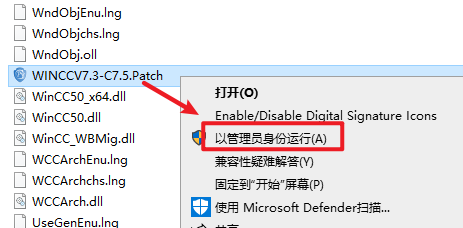 20.选中粘贴过来的“WINCCV7.3-C7.5.Patch”文件,右键选择“以管理员身份运行”