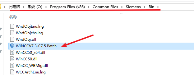 18.返回安装文件夹,双击打开“WinCC7.4Patch”复制“WinCCV7.3-V7.5.Patch”文件