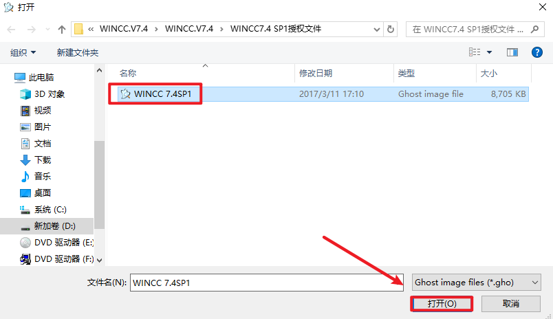 25.选中“WINCC 7.4SP1”文件,点击“打开”