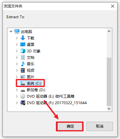 27.选中C盘根目录,点击“确定”