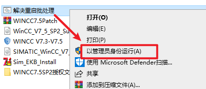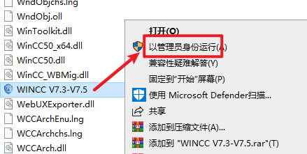 21.选中粘贴过来的“WINCCV7.3-C7.5”文件,右键选择“以管理员身份运行”