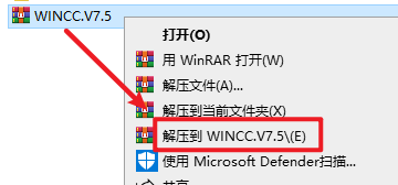 1.选中下载的压缩包,然后右键选择解压到”WINCC.V7.5″