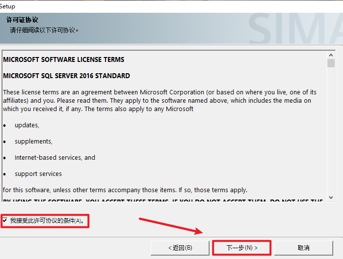 15.勾选“我接受…”,点击“下一步”