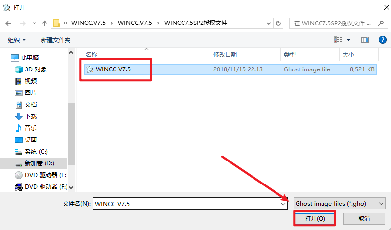 26.选中“WINCC V7.5”文件,点击“打开”