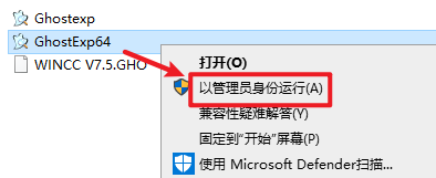 “GhostExp64”右键选择“以管理员身份运行”