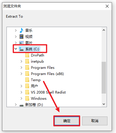 28.选中C盘根目录,点击“确定”