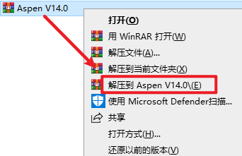 1.选中下载的压缩包,然后右键选择解压到“Aspen V14.0”
