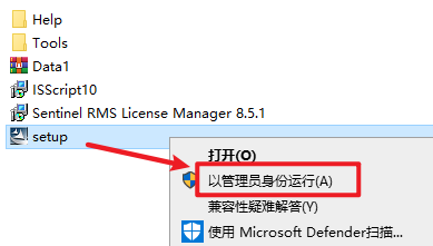 2.打开刚刚解压的文件夹,依次打开“Crack—install_Sentinel.RMS.8.5.1.Server”文件夹,选中“Setup”右键选择“以管理员身份运行”