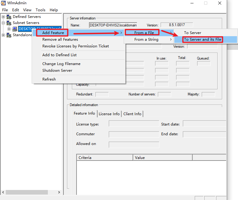 18.点开“SubnetServers“,右键计算机全名,然后依次点击“AddFeature -> From File -> to Server and its File“