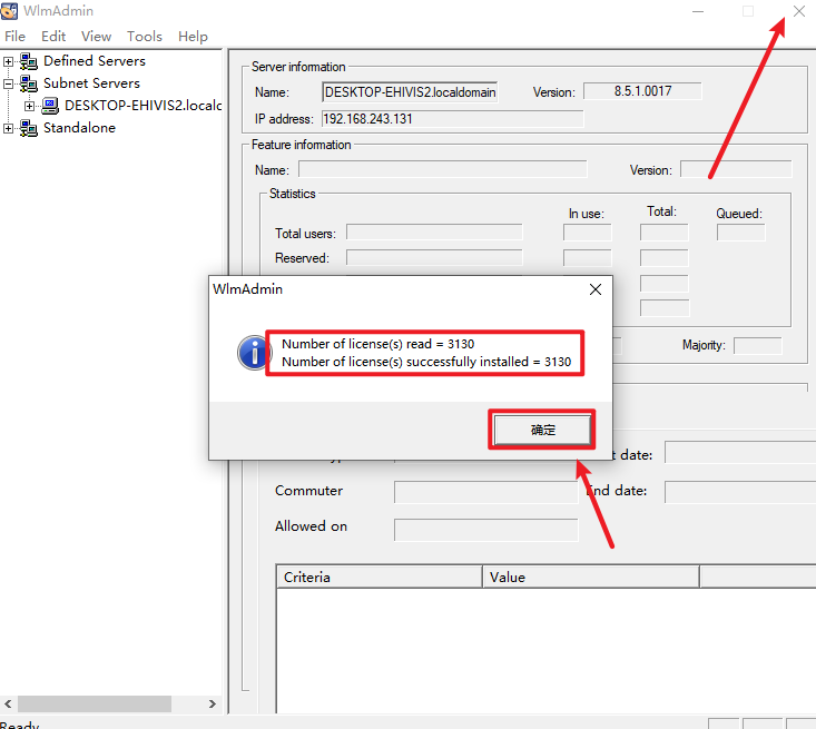 20.提示“3130”说明证书成功添加,点击“确定“,点击右上角的关闭