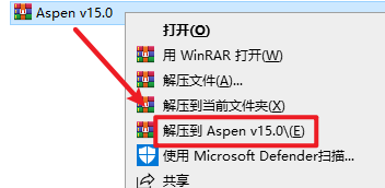 1.选中下载的压缩包,然后右键选择解压到“Aspen v15.0”
