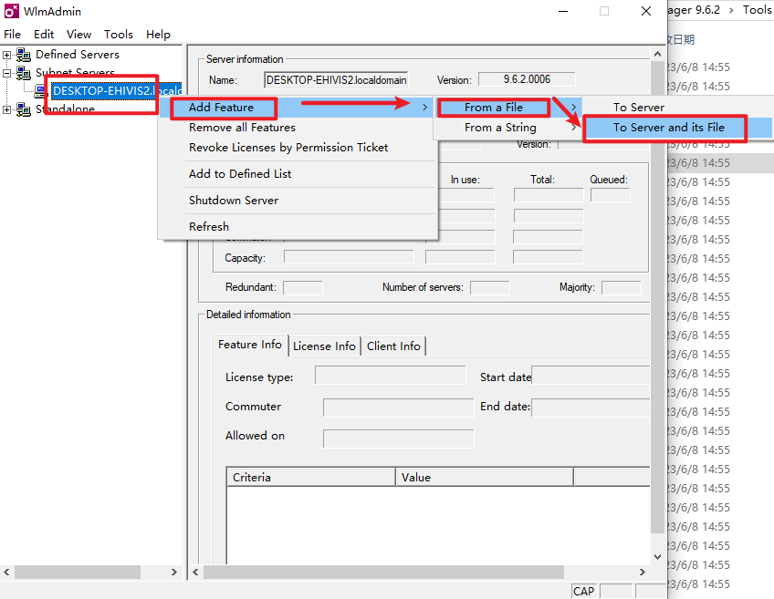 13.点开“SubnetServers“,鼠标右键计算机名,然后依次点击“Add Feature -> From File -> To Server and its File“