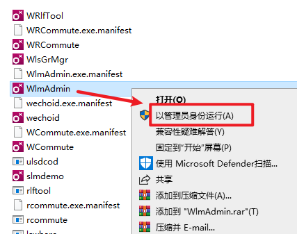 12.返回“Sentinel RMS License Manager 9.6.2”文件夹,双击打开“Tools”文件夹,找到并选中“WlmAdmin”文件,右键选择“以管理员身份运行”