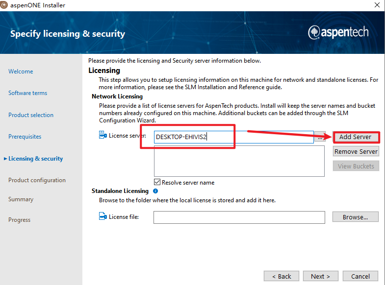 24.在License server栏输入:你的计算机名字,点击“Add Server”