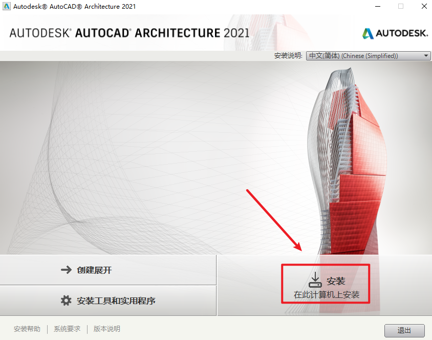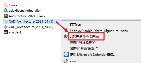 2.打开刚刚解压的文件夹,选中“CAD_Architecture_2021_64 (1).exe”右键选择“以管理员身份运行”