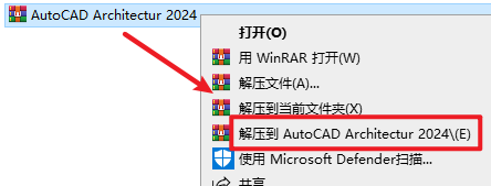 1.选中下载的压缩包,然后右键选择解压到“AutoCAD Architectur 2024”