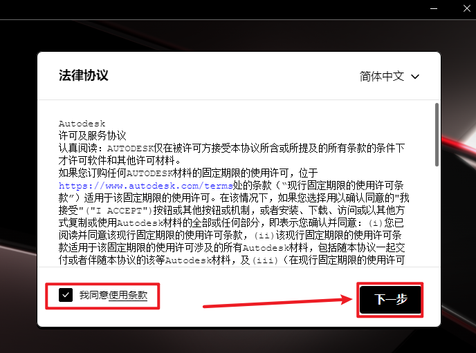 4.勾选“我同意…”,点击“下一步”