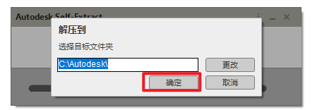 3.选择解压路径,点击“更改”可修改安装包的解压路径(注意:目标文件夹的路径中不能有中文,软件安装完成后可删除解压的文件夹),点击“确定”