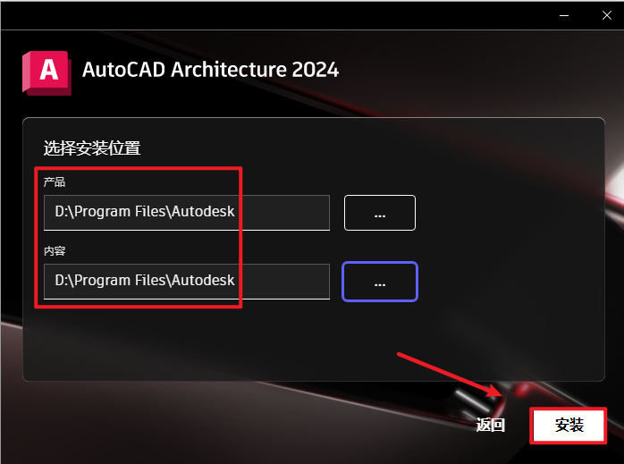 5.软件会依据CAD(如果安装有CAD2024)安装路径安装,没有则自行选择安装路径,安装路径不要出现中文,点击“安装”