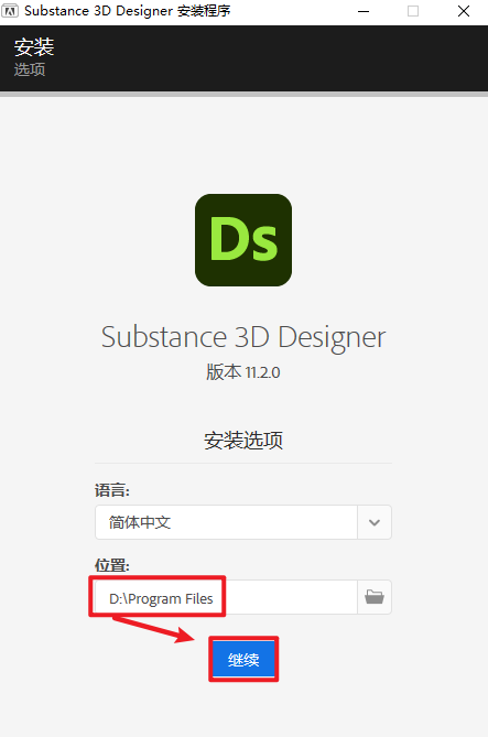 3.选择软件安装路径,安装路径不要出现中文,点击“继续”