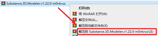 1.选中下载的压缩包,然后鼠标右键选择解压到“Substance.3D.Modeler.v1.21.0.m0nkrus”