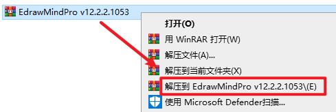 1.选中下载的压缩包,然后右键选择解压到“EdrawMindPro v12.2.2.1053”