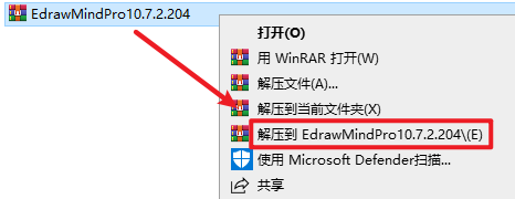 1.选中下载的压缩包,然后鼠标右键选择解压到“EdrawMindPro10.7.2.204”