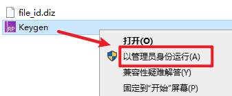 15.返回安装文件夹,双击打开”Keygen“文件夹,选中“Keygen”文件,右键点击“以管理员身份运行”