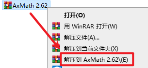 1.选中下载的压缩包,然后右键选择解压到”AxMath.2.62″