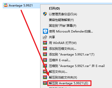 1.选中下载好的安装包,右键选择“解压到 Avantage 5.9921”