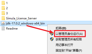6.返回之前解压的“Abaqus 2024”文件夹,选中“jdk-17.0.2_windows-x64_bin”右键选择“以管理员身份运行”