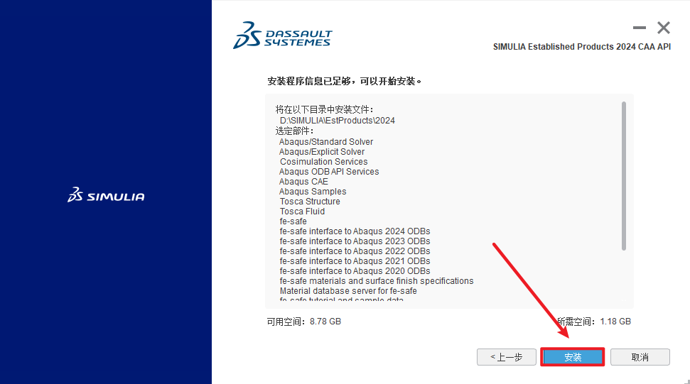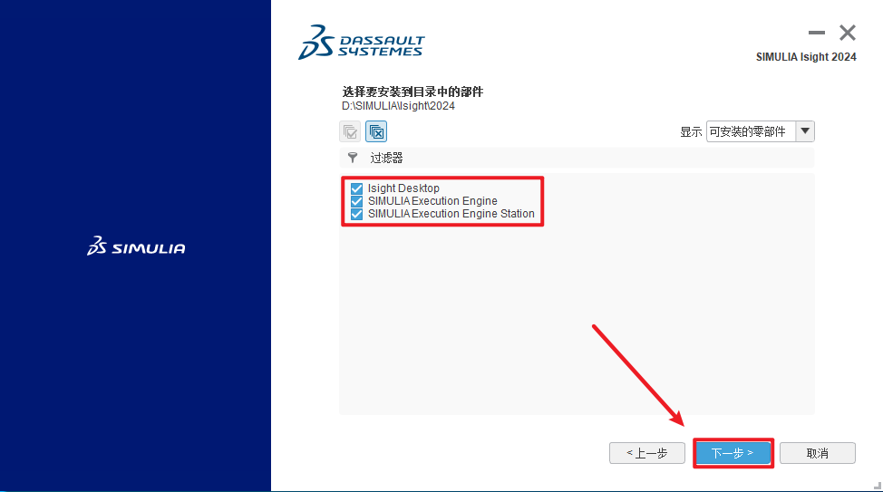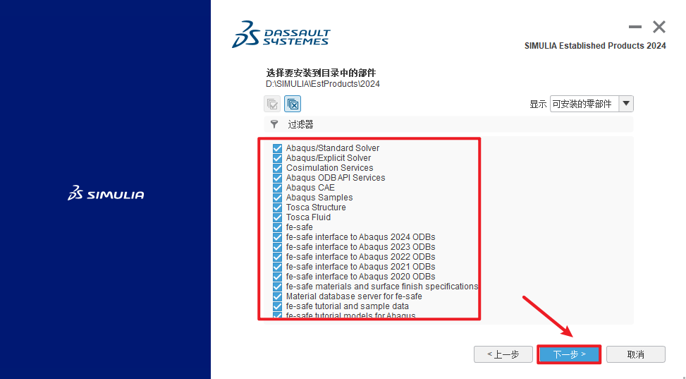 温馨提示:一定要勾选Abaqus CAE、Abaqus/Standard Solver、Abaqus/Explicti Solver。后面两个是求解器,记得一定要选