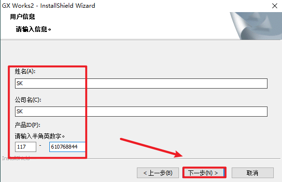 5.姓名、公司名填写:SK,产品ID输入:117-610768844,点击“下一步”