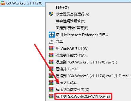 1.选中下载的压缩包,然后右键选择“解压到 GX Works3”