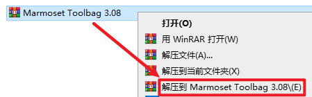 1.选中下载的压缩包,然后右键选择解压到“Marmoset Toolbag 3.08”