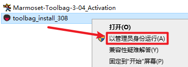 8.返回安装文件夹,选中“Marmoset-Toolbag-4-0-1_Activation.exe”,鼠标右键选择“以管理员身份运行”