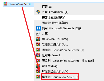 1.选中下载好的安装包,右键选择“解压到 GaussView 5.0.9”