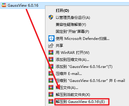 1.选中下载好的安装包,右键选择“解压到 GaussView 6.0.16”