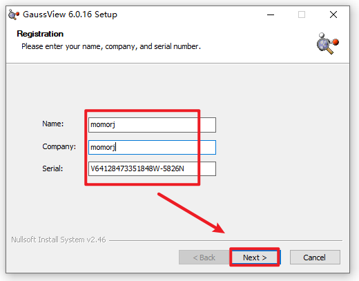5. 输入注册信息,Serial输入:V64128473351848W-5826N,点击“Next”