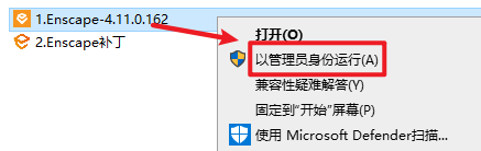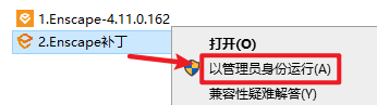 8.返回安装文件夹,选中“2.Enscape补丁”文件,右键选择“以管理员身份运行”