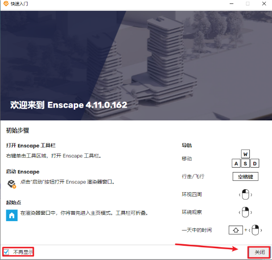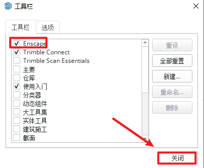 14.勾选“Enscape”选项就会出现Enscape工具栏,点击“关闭”