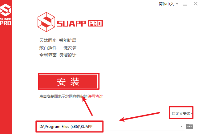 3.点击“自定义安装”,选择软件安装路径,电脑用户名和安装路径不要出现中文,点击“安装”